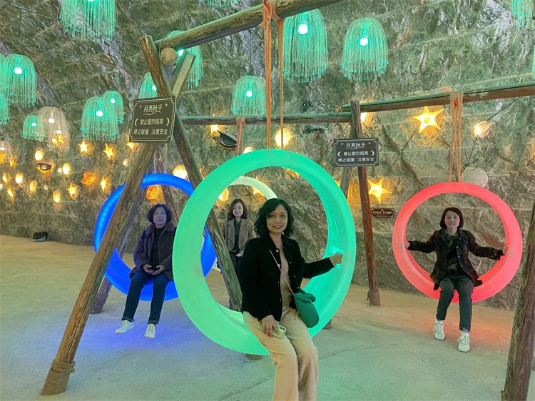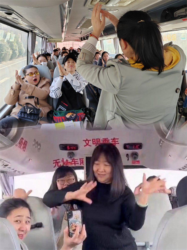 在一個(gè)多小時(shí)的車程中,工會(huì)女工委員們?yōu)榇蠹以敿?xì)介紹了鄭國(guó)渠的歷史背景,組織了猜歌曲、猜數(shù)字與桌操舞蹈等小活動(dòng),大家紛紛參與到互動(dòng)游戲中來(lái),車廂中彌漫著歡樂(lè)喧鬧的輕松氣氛。