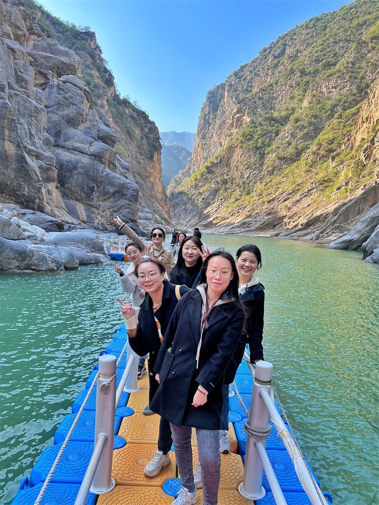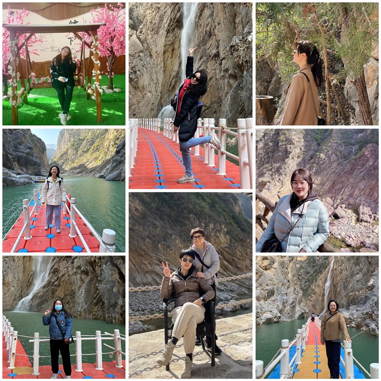 在一路歡聲笑語(yǔ)中,大家到達(dá)了鄭國(guó)渠景區(qū)。沿著山邊步道,拾級(jí)而下,賞春踏青,開(kāi)啟了涇河漫步之旅。山的崎嶇呼應(yīng)著峽的險(xiǎn)峻,水的靈秀映襯著石的詭譎,完美的詮釋了大自然的鬼斧神工。大家行走在棧道隧洞之間,相伴于碧水藍(lán)天之際,工作一周的疲憊已然消散不見(jiàn)。